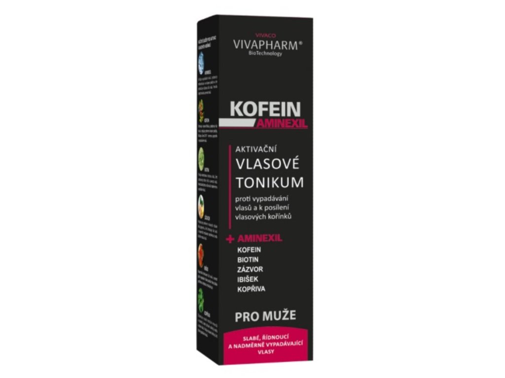 - KOFEÍN - Stimuluje vlasové folikuly, podporuje rast vlasov a zlepšuje prekrvenie vlasovej pokožky. Blokuje účinok DHT - hormónu spojeného s vypadávaním vlasov.