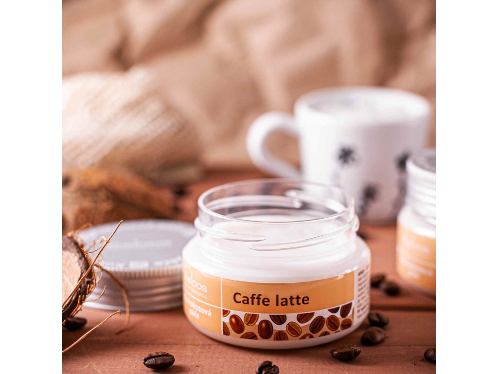 Schúlite sa do maznavej, omamne voňajúcej náruče, ktorá vás zahrnie svojou láskavou starostlivosťou. Prevoňte kožu esenciou caffe latte rozpustenú v hutnom kokosovom oleji. Nechajte si zdať krásne sny o diaľkach, útulných pražiarňach kávy a bielom mlieku, ktoré naplno zavlažia a pohladia vašu pokožku. Zloženie bio kokosového oleja lisovaného za studena s pridaným extraktom voňavých kávových plodov prispieva k dobrej nálade, zároveň bohato zásobuje pokožku na povrchu tela. Aktivujúca kombinácia voňavých látok vtieraná do kože celkovo harmonizuje. Vhodný na každodennú starostlivosť o pokožku aj na relaxačnú masáž.
