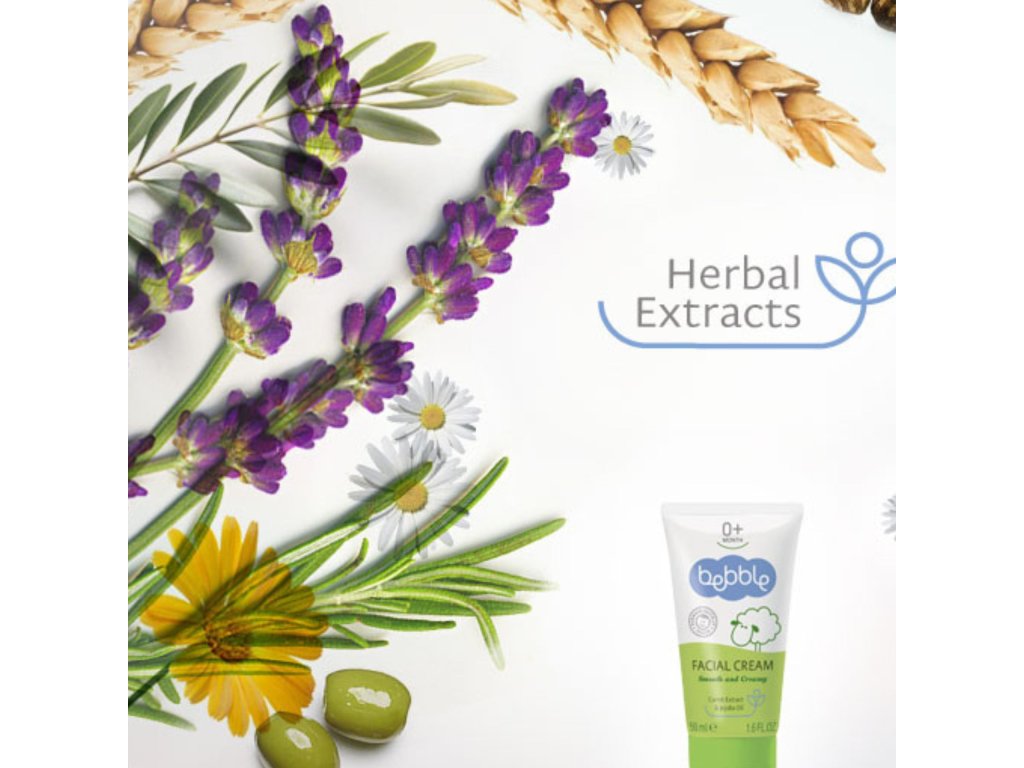 Krém na tvár Bebble s jemnou textúrou a aktívnym ochranným zložením je bohatý na prírodné oleje. Krém vyživuje, zjemňuje a chráni jemnú pokožku pred vplyvmi vonkajších faktorov. Pridaný extrakt z mrkvy pôsobí ako antioxidant a zlepšuje regeneráciu buniek. Je bohatý na karotén a vitamín C, ktoré zjemňujú pokožku a zároveň ju chránia pred slnečným žiarením.