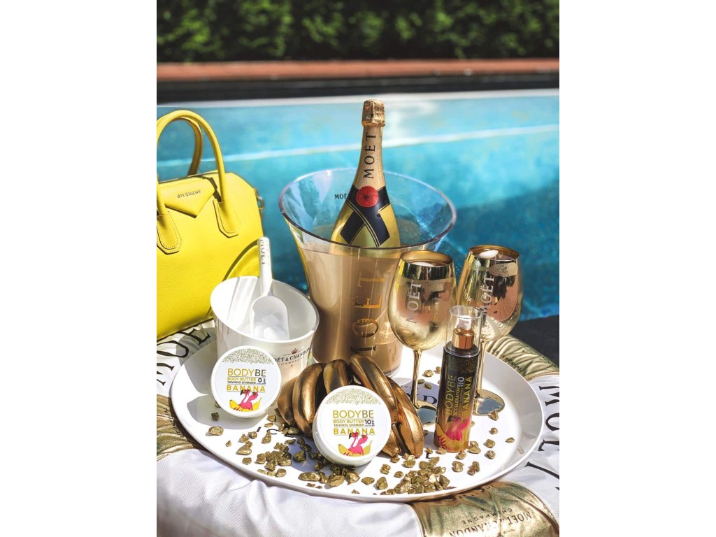 Rozjasňujúce opaľovacie maslo je dokonalým spoločníkom k vode aj na dovolenku. Jeho skvele vyvážená receptúra ti vykúzli perfektné tmavé opálenie a zaistí zamat dotyk. Delikátna vôňa banánu v čokoláde poteší milovníčky sladkého a tvoju bronzovú kožu dokonale rozžiari jemné trblietky. Neváhajte a kúpte si maslo na opaľovanie od českej značky BODYBE a posuň tento rok svoje bronzové opálenie na nový level!