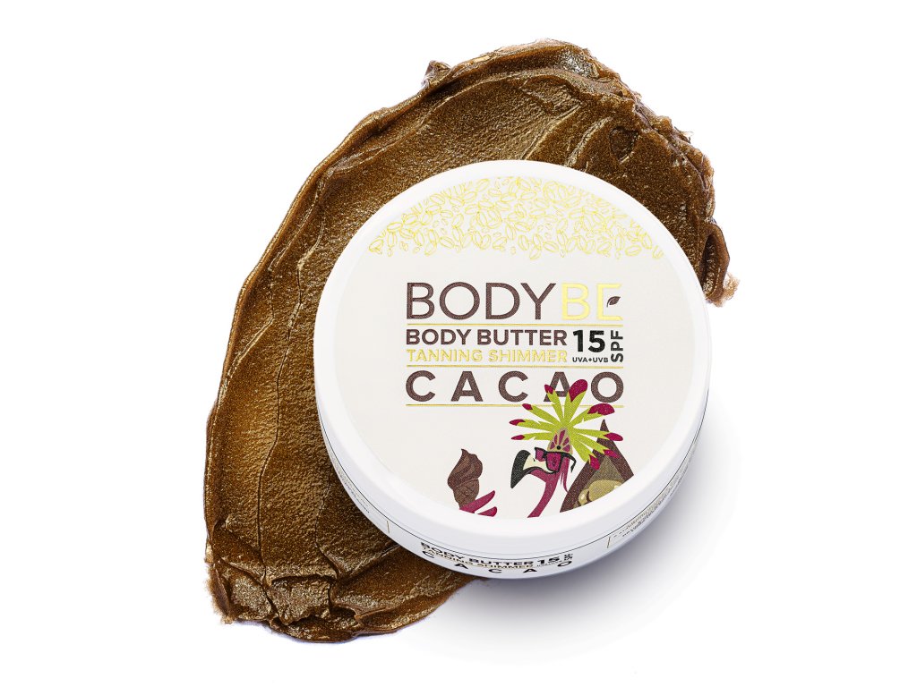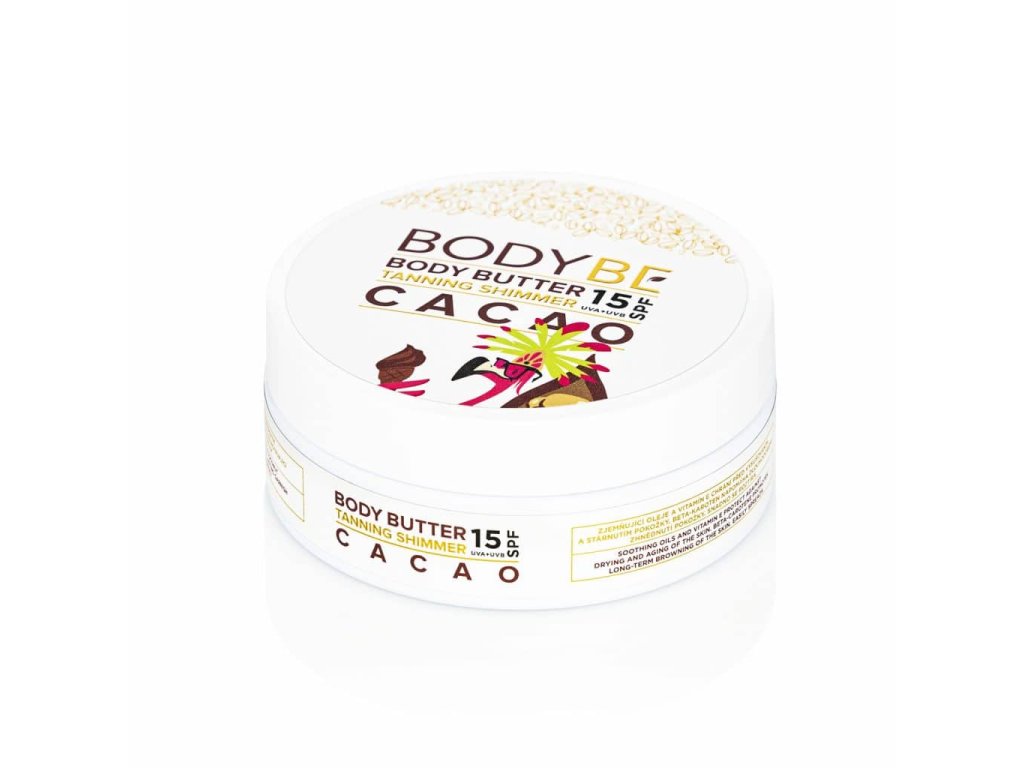 Rozjasňující opalovací máslo je dokonalým společníkem k vodě i na dovolenou. Jeho skvěle vyvážená receptura ti vykouzlí perfektní tmavé opálení a zajistí sametově hebkou kůži na dotek. Lahodná kakaová vůně potěší milovnice sladkého a tvou bronzovou kůži dokonale rozzáří jemné třpytky. Neváhej a pořiď si máslo na opalování od české značky BODYBE a posuň letos své bronzové opálení na nový level!