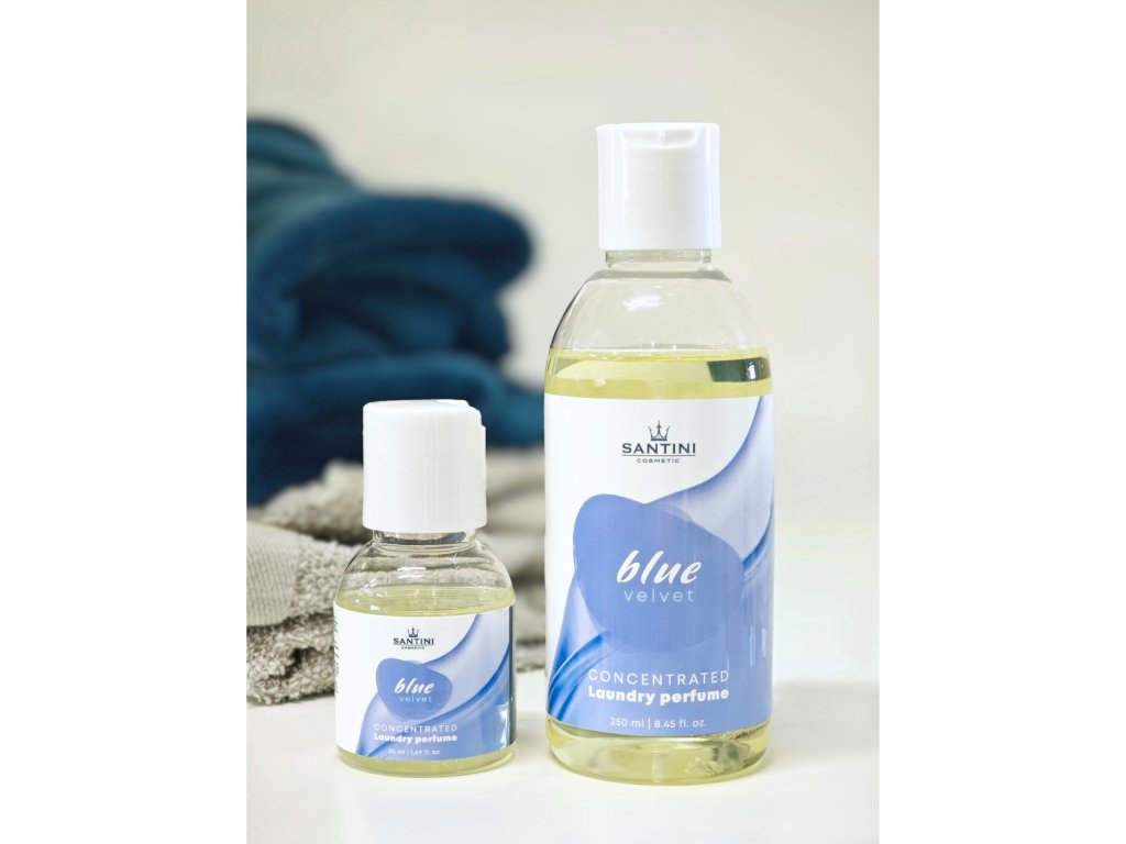 Doprajte si pocit dokonale sviežej a voňavej bielizne. Parfum do bielizne Santini – Blue Velvet je koncentrovaný parfum na pranie, ktorý premení bežné pranie na exkluzívny voňavý zážitok. Táto vôňa vás obklopí tajomstvom drevitých a korenistých tónov, kde sa jazmín a pačuli snúbi s hrejivou vanilkou. Céder a ružové korenie prinášajú hĺbku, zatiaľ čo čierne ríbezle dodáva sviežu, zmyselnú stopu.